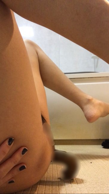 黒いキャミソールで前向きM字開脚で自宅のお風呂場でうんち排泄しているところの動画です♡