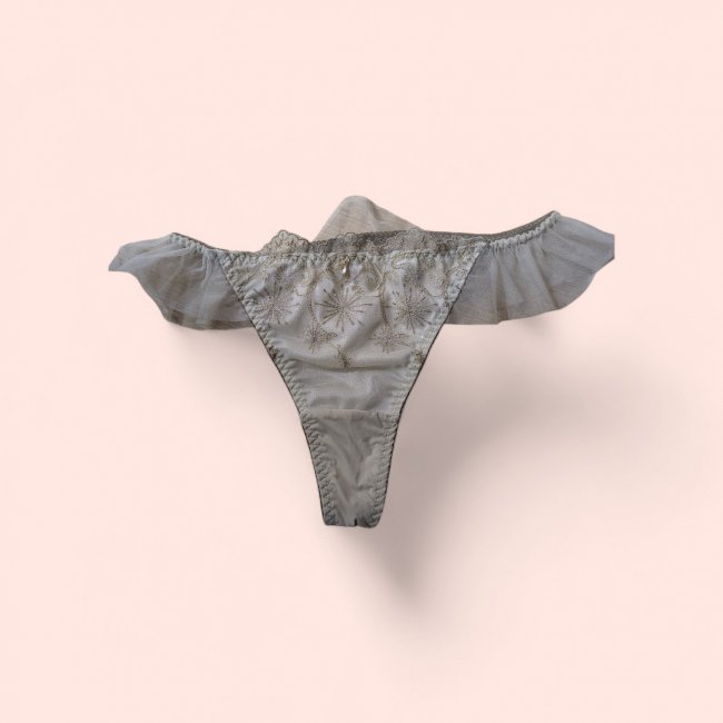 フリル、刺繍、レースがたっぷりで、おしり側のT部分がレースでほぼ見えちゃってんじゃん!?ってくらいえっちだけど清楚さもあるかわいいパンティ♥️