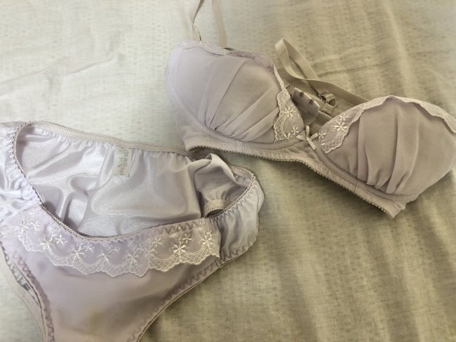 パープルのブラパンセットとピンクレースのパンティのセットとなります。