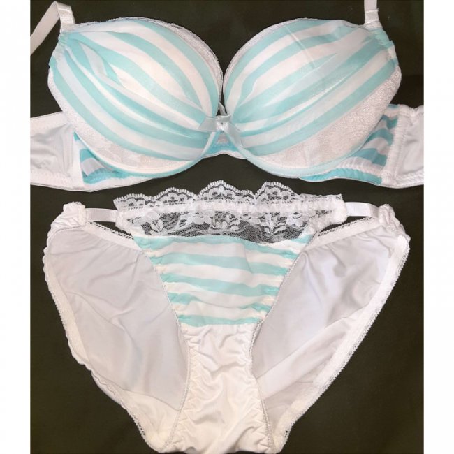 純白サテンに水色のしましま模様が可愛いBPセット(^▽^)