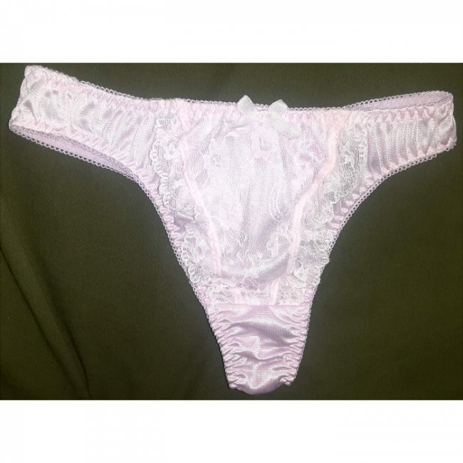 淡いピンク色のツルツルなサテンTバック♪